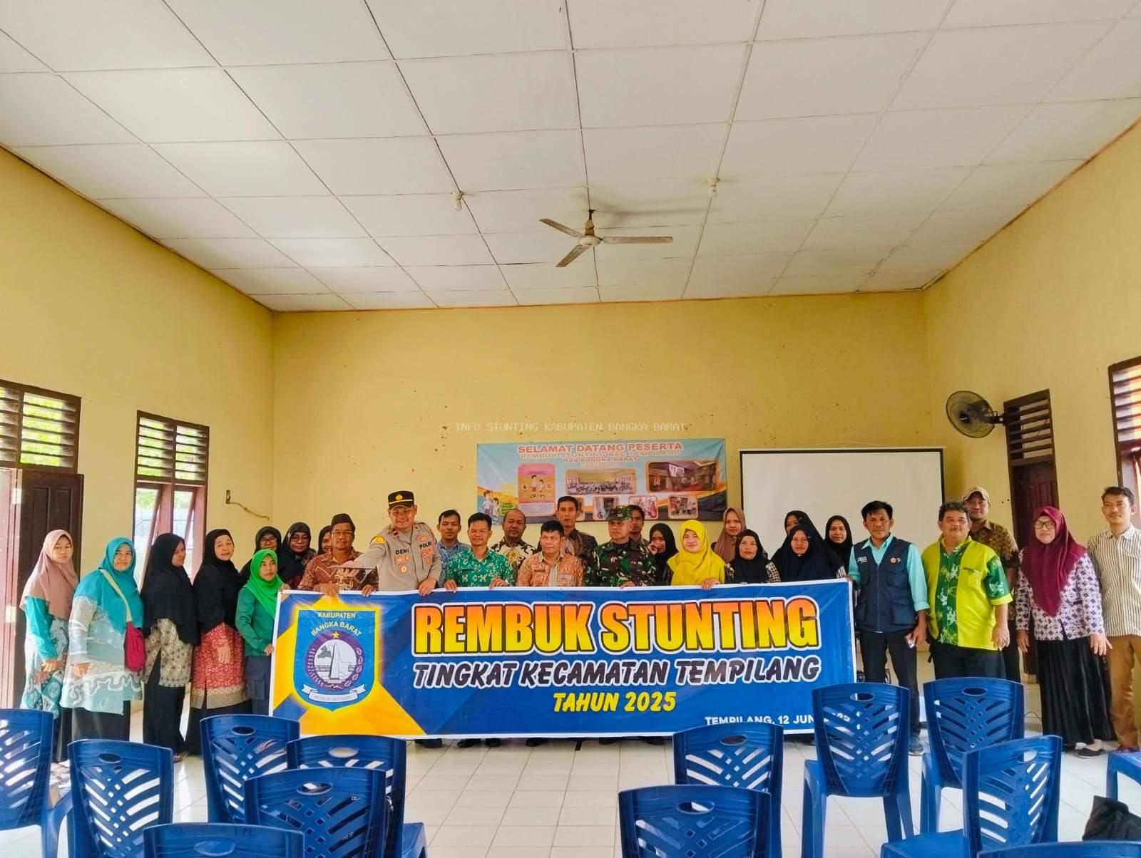 Tim Percepatan Penurunan Stunting Kecamatan Tempilang melaksanakan  Rembuk Stunting Tingkat Kecamatan tanggal 12 Juni 2025, bertempat di Gedung Kecamatan Sayang Ibu (KSI) Kecamatan Tempilang yang di hadiri oleh Forkopimda Kecamatan Tempilang, Camat Tempilang beserta jajarannya,  PKB/PLKB, Perwakilan KUA, Puskesmas, Tokoh Agama, Tokoh Masyarakat,  dan perwakilan Tim Pendamping Keluarga di wilayah Kecamatan Tempilang. Adapun acara Rembuk Stunting di buka oleh Bapak Rusian, S.K.M., M.H. selaku Camat Kecamatan Tempilang. Dalam Sambutannya Pak Rusian, S.K.M., M.H.  menyampaikan agar seluruh  komponen masyarakat,  baik stakeholder, tokoh agama, dan tokoh masyarakat dapat bekerja sama untuk membantu program pemerintah dalam percepatan penurunan stunting di wilayah Kecamatan Tempilang. Hasil akhir dari kegiatan Rembuk Stunting Tingkat Kecamatan Tempilang Tahun 2025 yang di sepakati bersama dalam bentuk Penandatanganan Komitmen Percepatan Penurunan Stunting.
